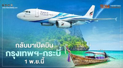 บางกอกแอร์เวย์ส กลับมาเปิดบินกรุงเทพฯ-กระบี่ 1 พ.ย.นี้
