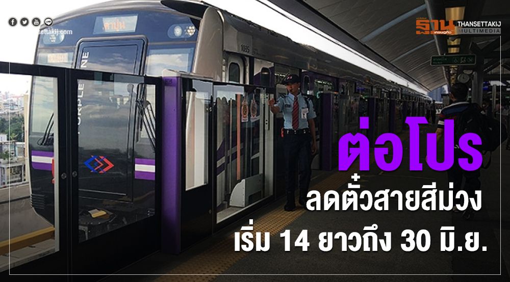 สำหรับประชานชนต้องการโดยสาร MRT สายสีน้ำเงินต่อสายสีม่วง ตั้งแต่วันนี้จนถึงวันที่ 30 มิ.ย.63 MRT สายสีม่วงได้ขยายระยะเวลาโปรโมชั่น โดยคิดอัตราค่าโดยสารเพียง 14 - 20 บาทตลอดสาย จึงทำให้ท่านที่โดยสารเชื่อมต่อจาก MRT