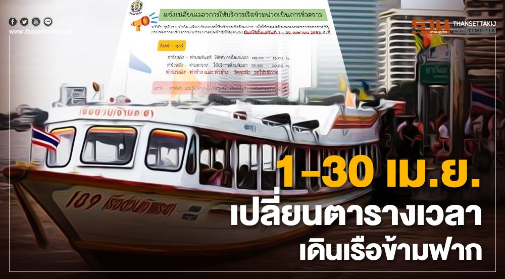 ทั้งนี้ เพื่อให้เกิดผลกระทบกับประชาชนน้อยที่สุด ทางบริษัทจึงได้กำหนดเปลี่ยนเวลาการให้บริการเรือโดยสาร (ข้ามฟาก) โดยเริ่มใช้ตั้งแต่วันที่ 1 – 30 เมษายน 2563 ดังนี้