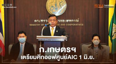 กระทรวงเกษตรและสหกรณ์เตรียมเปิดศูนย์ AIC วันที่ 1 มิ.ย.นี้ พร้อมจับมืออาลีบาบา -แกร็บ จัดหลักสูตรตลาดออนไลน์