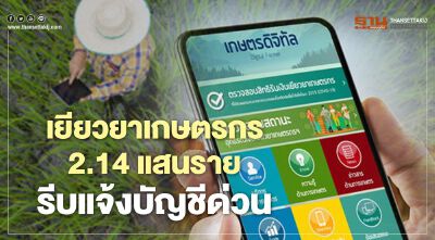 ตรวจสอบสิทธิ์เงินเยียวยาเกษตรกร ย้ำชัด 2.14 แสนรายรีบแจ้งบัญชีด่วน
