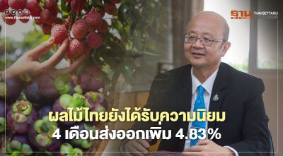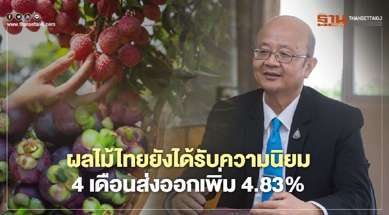 ผลไม้ไทยยังได้รับความนิยม  4 เดือนส่งออกเพิ่ม 4.83%