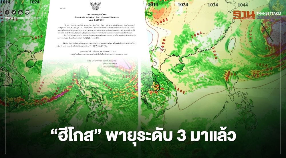 อธิบดีกรมอุตุฯ เตือน รับมือพายุ “ฮีโกส”  เริ่มออกฤทธิ์ วันที่ 20 ส.ค. เผย ความรุนแรงเทียบเท่า “ซินลากู” หรือมากกว่า ระวังฝนตกหนัก น้ำป่าไหลหลาก