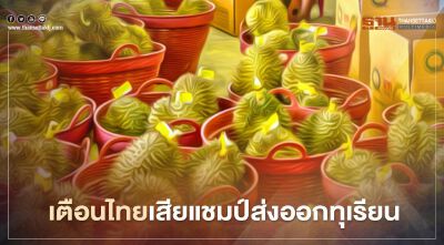 เตือน "มาเลย์" ม้ามืด ไทยเสียแชมป์ส่งออกทุเรียน