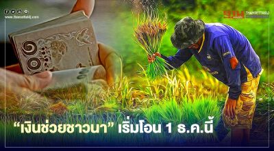 เฮลั่น ธ.ก.ส. นัดโอน “เงินช่วยชาวนา" ไร่ละ 500 รับสูงสุด 10,000 บาท 1 ธ.ค.นี้