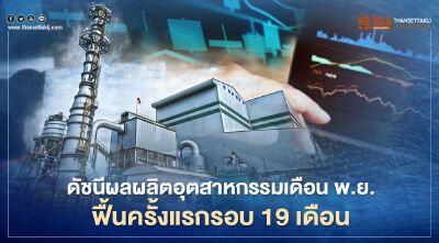 สอดคล้องกับอัตราการใช้กำลังการผลิตเดือนพฤศจิกายนที่ขยายตัวเพิ่มจากระดับ 63.19 ในปีก่อนมาอยู่ที่ระดับ 64.80 ส่งผลให้ดัชนีผลผลิตอุตสาหกรรมเดือนพฤศจิกายนกลับมาขยายตัวเพิ่มขึ้นเมื่อเทียบกับช่วงเดียวกันของปีก่อนและขยายตัวเพิ่มขึ้นจากเดือนตุลาคมที่ 1.77%