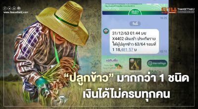 "เงินประกันรายได้ข้าว" จ่ายส่วนต่าง “ปลูกข้าว” มากกว่า 1 ชนิด เงินได้ไม่ครบทุกคน เช็ก ธ.ก.ส. ด่วน