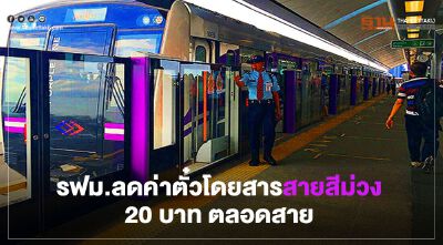 มีเฮ รฟม.จัดโปรค่าตั๋วโดยสาร “สายสีม่วง” 20 บาท ตลอดสาย