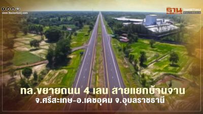 เปิดถนนใหม่ ทล.ขยายถนน 4 เลน สายแยกบ้านจาน จ.ศรีสะเกษ – อ.เดชอุดม จ.อุบลราชธานี