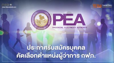 "กฟภ." เปิดรับสมัครบุคคลคัดเลือกรับตำแหน่งผู้ว่าการ คนที่ 15 หลังผู้ว่าการ PEA จะครบวาระเดือนสิงหาคม