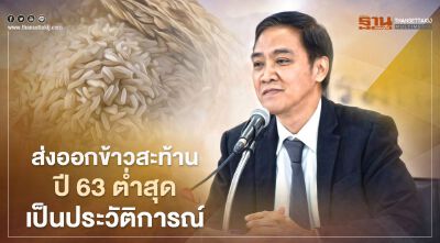 ส่งออกข้าวไทยพลาดเป้าทั้งปี63 มีปริมาณ 5.72 ล้านตัน จากเป้า6 ล้านตัน ถือว่าต่ำสุดในรอบ20ปีของการส่งออกข้าว เหตุจากราคาข้าวไทยแพง -ค่าบาทที่ผันผวน ยึดหัวหาดเป็นประเทศผู้ส่งออกข้าวอันดับ3ของโลกรองจาก อินเดีย และเวียดนาม พร้อมตั้งเป้าปี64 ไว้ที่ 6 ล้านตัน