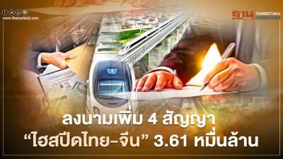 รฟท.เดินหน้าลงนามสัญญาไฮสปีดไทย-จีน เพิ่มอีก 4 สัญญา มูลค่า 3.61 หมื่นล้านบาท ภายในวันที่ 29 มี.ค.นี้ เล็งออกหนังสือแจ้งเริ่มงาน-ออกพ.ร.ฎ.เวนคืน 3 ปี ขณะที่สัญญา 4-1 เตรียมเปิดประมูล