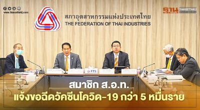 วัคซีนโควิด-19 สมาชิก ส.อ.ท. แจ้งขอฉีดกว่า 5 หมื่นราย