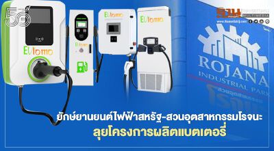 รายงานข่าวระบุว่า บริษัท EVLOMO จากไมแอมี สหรัฐอเมริกา ได้ดำเนินการร่วมกับบริษัท สวนอุตสาหกรรมโรจนะ จำกัด (มหาชน) เพื่อร่วมทุนกัน ดำเนินโครงการผลิตแบตเตอรี่เพื่อเก็บพลังงานไฟฟ้า (Battery Cell production) ขนาดการผลิต 8 GWh. (กิโลวัตต์) หรือ 8,000 เมกะวัตต์ ซึ่งเป็นระดับที่ใหญ่ที่สุดในอาเซียน เทียบกับการรองรับยานยนต์ไฟฟ้า หรืออีวี (EV) ได้ 150,000 คัน จะเกิดเงินลงทุนสูงถึง 1.06 พันล้านเหรียญสหรัฐ หรือประมาณ 3.3 พันล้านบาท