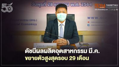 “เราชนะ”-“คนละครึ่ง”ดันดัชนีผลผลิตอุตสาหกรรม มี.ค. ขยายตัวสูงสุดรอบ 29 เดือน