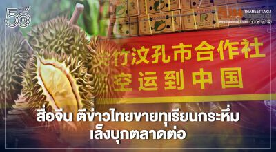 สื่อจีน ตีข่าวไทยขายทุเรียนกระหึ่ม เล็งบุกตลาดต่อ