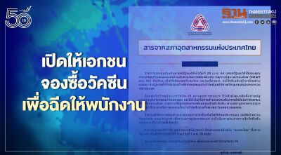 ส.อ.ท.เปิดให้เอกชนจองซื้อวัคซีนโควิด-19 ฉีดให้พนักงานตนเองหลังบิ๊กตู่ไฟเขียว ผ่าน www.fti.or.th