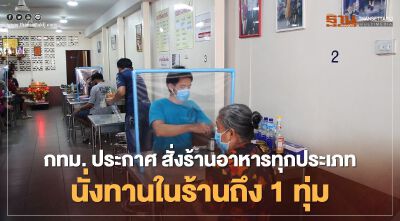 กทม. ประกาศ สั่งร้านอาหารทุกประเภท นั่งทานในร้านถึง 1 ทุ่ม เริ่มพรุ่งนี้ 5 ม.ค.
