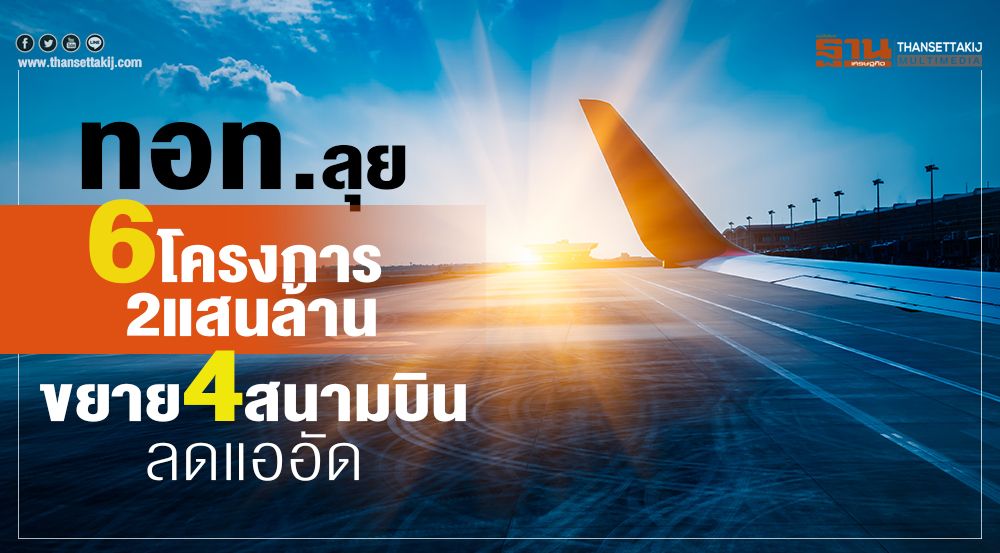 เปิดไทม์ไลน์แผนขยายสนามบิน ทอท.ช่วง 6 ปีนี้ รุก 6 โครงการ ใน 4 สนามบิน มูลค่า 1.9 แสนล้านบาท ปักธงเฟส 3 ผุดเทอร์มินัลหลังใหม่ด้านทิศเหนือ-รันเวย์ 3 สนามบินสุวรรณภูมิเปิดปี 2565 ส่วนดอนเมือง-ภูเก็ต-เชียงใหม่ ขยายเต็มพื้นที่ เพิ่มการรองรับเป็น 180 ล้านคน