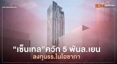 บริษัทโรงแรมเซ็นทรัลพลาซา หรือ “CENTEL” แจงตลาดหลักทรัพย์ฯร่วมลงทุน5พันล้านเยน ในโครงการ เซ็นทารา แกรนด์ โอซาก้า ในญี่ปุ่น