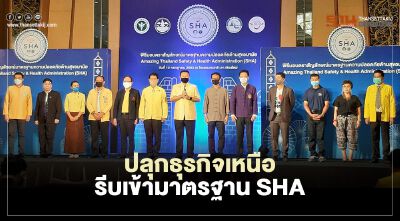 ดันเข้ามาตรฐาน SHA ททท.ธุรกิจเหนือฟื้นเศรษฐกิจและการท่องเที่ยวหลังโควิด-19 พร้อมมอบตราสัญลักษณ์ “SHA” ได้มาตรฐานความปลอดภัย สร้างความเชื่อมั่น รับมาตรการกระตุ้นไทยเที่ยวไทย 2.24 หมื่นล้านที่เริ่มแล้ว