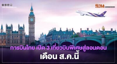 “การบินไทย” เปิดให้บริการ 3 เที่ยวบินพิเศษสู่ลอนดอน ในเดือนสิงหาคมนี้ อำนวยความสะดวกแก่ผู้โดยสารที่ต้องการเดินทางสู่สหราชอาณาจักร และรับผู้โดยสารชาวไทยในสหราชอาณาจักรที่มีความประสงค์จะเดินทางกลับประเทศ เผยเปิดขายตั๋ว One Way ราคา 2.5หมื่นบาท