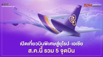การบินไทย เปิดเที่ยวบินพิเศษ สู่ยุโรป และเอเชีย ตลอดส.ค.นี้ รวม 5 จุดบิน รองรับผู้ที่มีความจำเป็นต้องเดินทาง รวมทั้งขนคนไทยตกค้างในต่างประเทศกลับบ้าน