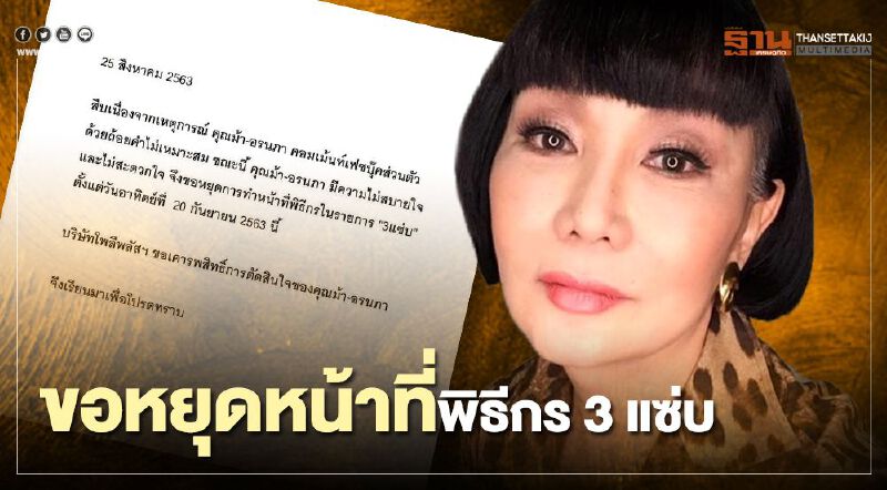 เช่นเดียวกับ เฟซบุ๊ก “3แซ่บ” ซึ่งเป็นรายการของ บริษัท โพลีพลัส เอ็นเตอร์เทนเม้นท์ จำกัด  ได้โพสต์ข้อความในทำนองเดียวเช่นกัน
