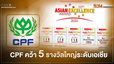 บริษัท เจริญโภคภัณฑ์อาหาร จำกัด (มหาชน) หรือ ซีพีเอฟ เปิดเผยว่า บริษัทสามารถ คว้า 5 รางวัล The Asian Excellence Awards 2020 จัดโดยนิตยสาร Corporate Governance Asia สื่อชั้นนำของฮ่องกงและเอเชียที่มุ่งเสนอประเด็นด้านเศรษฐกิจและการกำกับดูแลกิจการที่ดี ตอกย้ำบทบาทการดำเนินธุรกิจที่เป็นเลิศและได้รับการยอมรับในระดับสากล ซึ่งประกอบด้วยรางวัล“ซีอีโอยอดเยี่ยมแห่งเอเชีย” (Asia’s Best CEO) รางวัล“ซีเอฟโอยอดเยี่ยมแห่งเอเชีย” (Asia’s Best CFO) รางวัล “นักลงทุนสัมพันธ์ยอดเยี่ยมแห่งเอเชีย” (Best Investor Relations Professional) และ ตัวองค์กร บริษัท เจริญโภคภัณฑ์อาหาร จำกัด(มหาชน) ได้รับรางวัล “บริษัทนักลงทุนสัมพันธ์ยอดเยี่ยมแห่งเอเชีย” (Best Investor Relations Company) และ “ซีเอสอาร์ยอดเยี่ยมแห่งเอเชีย” (Best CSR Company) โดยทั้ง 5 รางวัลดังกล่าว มีรายละเอียดและเกณฑ์การพิจารณา ดังนี้