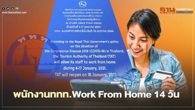 ททท.ให้พนักงานWork From Home 14 วันเริ่ม4ม.ค.นี้