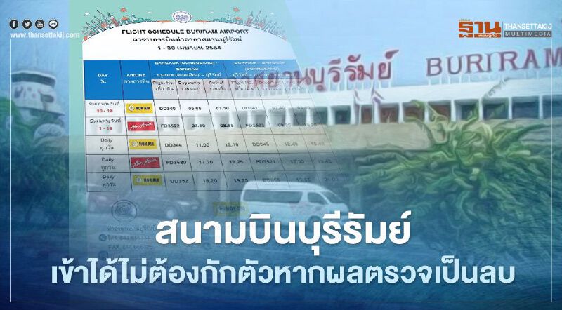 กรมท่าอากาศยาน แจงสนามบินบุรีรัมย์เข้าได้ไม่ต้องกักตัว หากผลตรวจโควิด-19 เป็นลบ พร้อมยันทุกสนามบิน ตรวจเข้มพร้อมรับผู้โดยสาร ในช่วงเทศกาลสงกรานต์