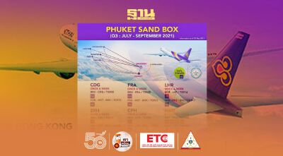 การบินไทยเปิดตารางบินรับภูเก็ตแซนด์บ็อกซ์ ให้บริการ 5 เที่ยวบินตรงจากยุโรปสู่ภูเก็ตในเดือนกรกฏาคม-กันยายนนี้ ทั้งส่ง “ไทยสมายล์” เปิดเส้นทางบิน ไป-กลับ ภูเก็ต-ฮ่องกง 4 เที่ยวบินต่อสัปดาห์ เริ่ม 2 กรกฎาคมนี้