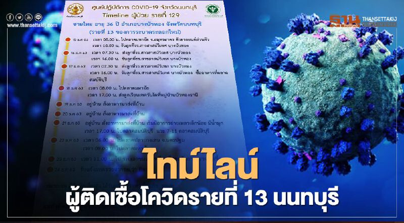 สำหรับไทม์ไลน์ของผู้ติดเชื้อโควิดรายที่ 13 จังหวัดนนทบุรี