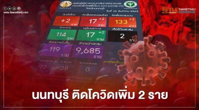 ศูนย์ข้อมูล COVID-19 นนทบุรี นนทบุรี พบผู้ติดเชื้อโควิดเพิ่ม 2 ราย รวมแล้ว 17 ราย