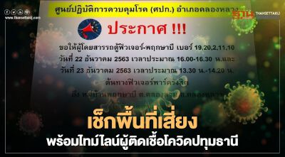 ปทุมธานีเช็กด่วน!เปิดพื้นที่เสี่ยง"ผู้ติดเชื้อโควิด"รายใหม่