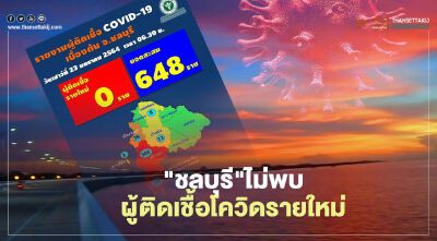 สำนักงานสาธารณสุขจังหวัดชลบุรี รายงานไม่พบผู้ติดเชื้อโควิด-19 รายใหม่ ต่อเนื่องวันที่สอง มียอดผู้ติดเชื้อสะสม 648 ราย
