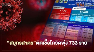 "สมุทรสาคร"พบผู้ติดเชื้อรายใหม่ 733 ราย มาจากการค้นหาเชิงรุก 724 ราย และในโรงพยาบาล 9 ราย เป็นแรงงานต่างด้าว 710 ราย ผู้ติดเชื้อสะสม 8,080 ราย