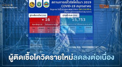 วันที่ 16 กุมภาพันธ์ 2564 COVID - 19 สมุทรสาคร รายงานข้อมูลสถานการณ์ไวรัสโคโรนา 2019(โควิด-19) ในพื้นที่ จ.สมุทรสาคร ข้อมูลล่าสุด ณ เวลา 24.00 น.ของวันที่ 15 กุมภาพันธ์ 2564 พบผู้ป่วยรายใหม่ 16 ราย ลดลงจากันก่อนหน้านี้ที่พบผู้ติดเชื้อรายใหม่ 69 ราย