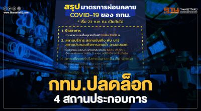 เริ่มวันนี้! เปิดรายชื่อ 4 กลุ่มสถานประกอบการที่ กทม.ประกาศปลดล็อก -มีมาตรการผ่อนปรน และเช็กอีก 2 สถานที่ที่ยังไม่ได้รับการอนุญาตให้กลับมาเปิดปกติ