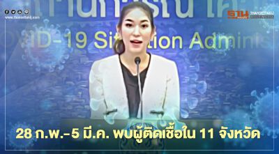 ศบค.เผย 28 ก.พ.-5 มี.ค. จังหวัดที่พบผู้ติดเชื้อโควิด-19 มีทั้งสิ้น 11 จังหวัด ลดลงต่อเนื่อง