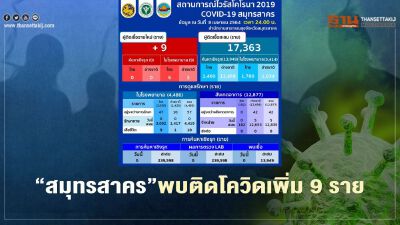 "สมุทรสาคร"พบผู้ติดเชื้อโควิด-19 รายใหม่ 9 ราย ผู้ป่วยยืนยันสะสม 17,363 ราย