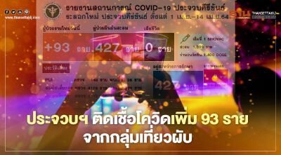 ประจวบฯ พบติดเชื้อโควิด-19 รายใหม่ 93 ราย สะสม 427 ราย ทารก 8 เดือนติดเชื้อด้วย  จากการระบาดกลุ่มเที่ยวผับ อึ้ง 70% ไม่มีอาการ