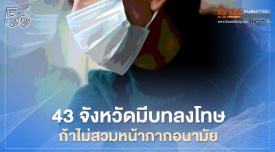อัพเดท43จังหวัดมีบทลงโทษ ถ้าไม่สวมหน้ากากอนามัยเมื่ออยู่นอกบ้าน