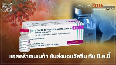 แอสตร้าเซนเนก้าเผย การผลิตวัคซีนป้องกันโควิด-19 ในประเทศไทยมีความคืบหน้าเป็นอย่างมาก ยืนยันพร้อมทยอยส่งมอบวัคซีนล็อตแรกที่ผลิตโดยสยามไบโอไซเอนซ์ให้แก่รัฐบาลไทยตามกำหนดภายในเดือนมิถุนายนนี้