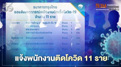ธนาคารกรุงไทย แจ้งพนักงานติดเชื้อโควิด 11 ราย