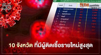 10 จังหวัดที่มีผู้ติดเชื้อรายใหม่สูงสุด