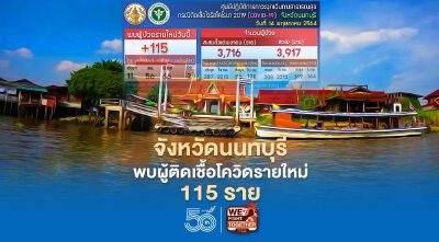 จังหวัดนนทบุรี พบผู้ติดเชื้อโควิดรายใหม่ จำนวน 115 ราย