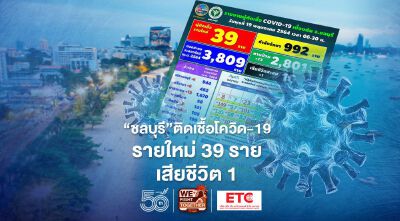 "ชลบุรี"ติดเชื้อโควิด-19 รายใหม่วันนี้ 39 ราย เสียชีวิต 1