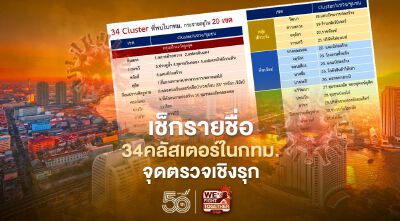 เปิดรายชื่อ 34 คลัสเตอร์โควิดในเมืองกรุง กระจายอยู่ทั่ว 20 เขต พร้อมแผนการตรวจหาเชื้อโควิดเชิงรุกของกทม. จุดตรวจมีที่ไหนบ้าง เช็กได้เลยที่นี่