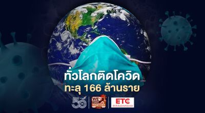 ยอดโควิดทั่วโลก 22 พ.ค.64 เวลา 07.15 น. Worldometer ซึ่งเป็นเว็บไซต์รายงานข้อมูลล่าสุดที่มีการรวบรวมจากหน่วยงานด้านสาธารณสุขทั่วโลก รายงานจำนวนผู้ติดเชื้อโควิด-19 ทั่วโลก อยู่ที่ 166,453,418 ราย เพิ่มขึ้น 609,481 ราย ส่วนจำนวนผู้เสียชีวิตจากโควิด-19 ทั่วโลก รวมอยู่ที่ 3,456,978 ราย เพิ่มขึ้น 12,261 ราย หายป่วยสะสม 147,215,981 ราย